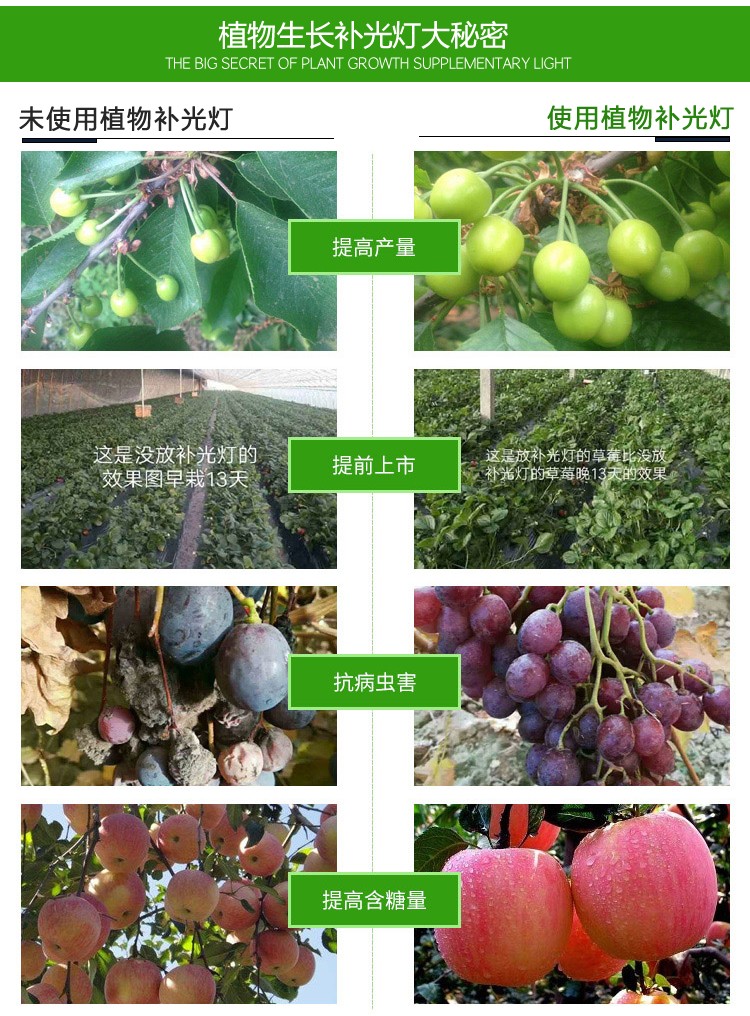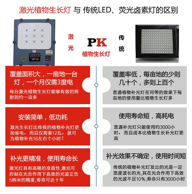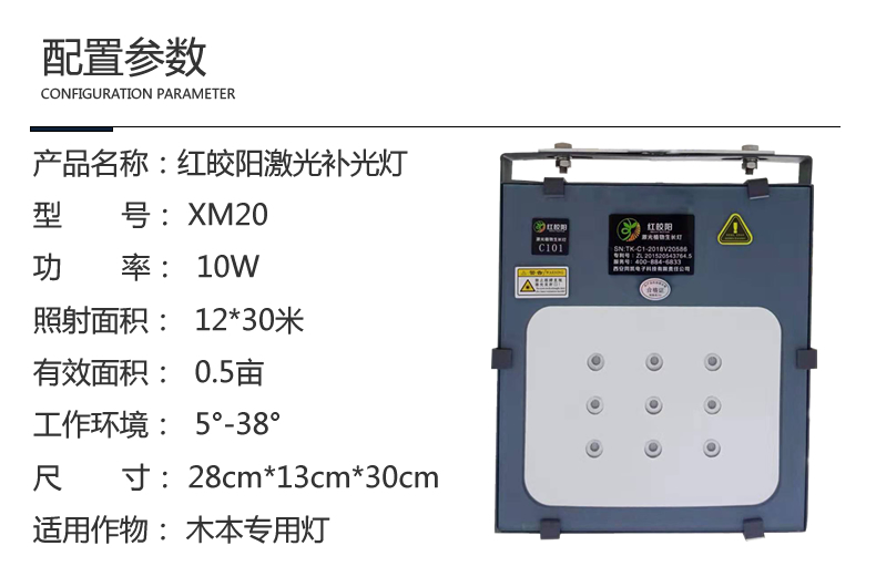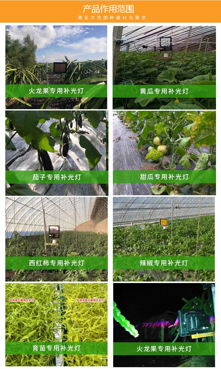 使用方法:光源距植物高度:激光植物补光灯中心光源与农作物平均高度保持一致。